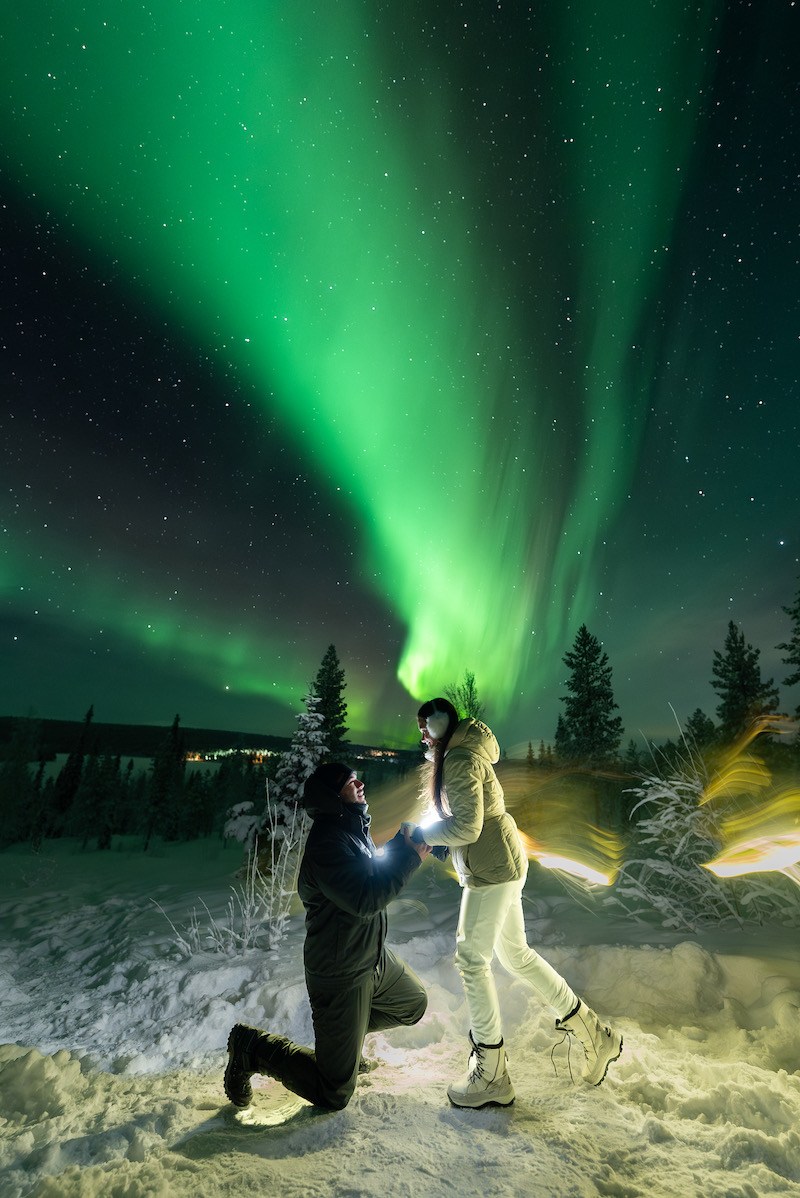 pedido sob a aurora boreal